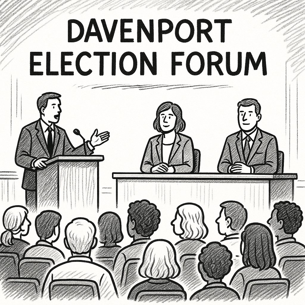 The forum, which is free and open to the public, will feature candidates in all competitive races. Voters will be able to hear candidates discuss key issues facing Davenport ahead of the November election.
